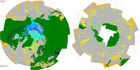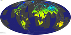 The MODIS Land Science Team has developed coarse 5km versions of selected products to enable synoptic quality assessment via the internet. The coarse spatial resolution products are projected into a global coordinate system defined with pixel sizes corresponding to 20km in the Hammer-Aitoff projection (except for the Sea Ice products that have 14.15km pixels defined in the Lambert Azimuthal projection). These global browse images are generated with fixed contrast stretching and color look-up tables to enable consistent temporal comparison. This web interface has been developed to support interactive selection of browse products and zooming and panning at 5km resolution. The global browse images available on this web site should not be used for scientific analyses. Full spatial resolution are also available in golden tile time series.